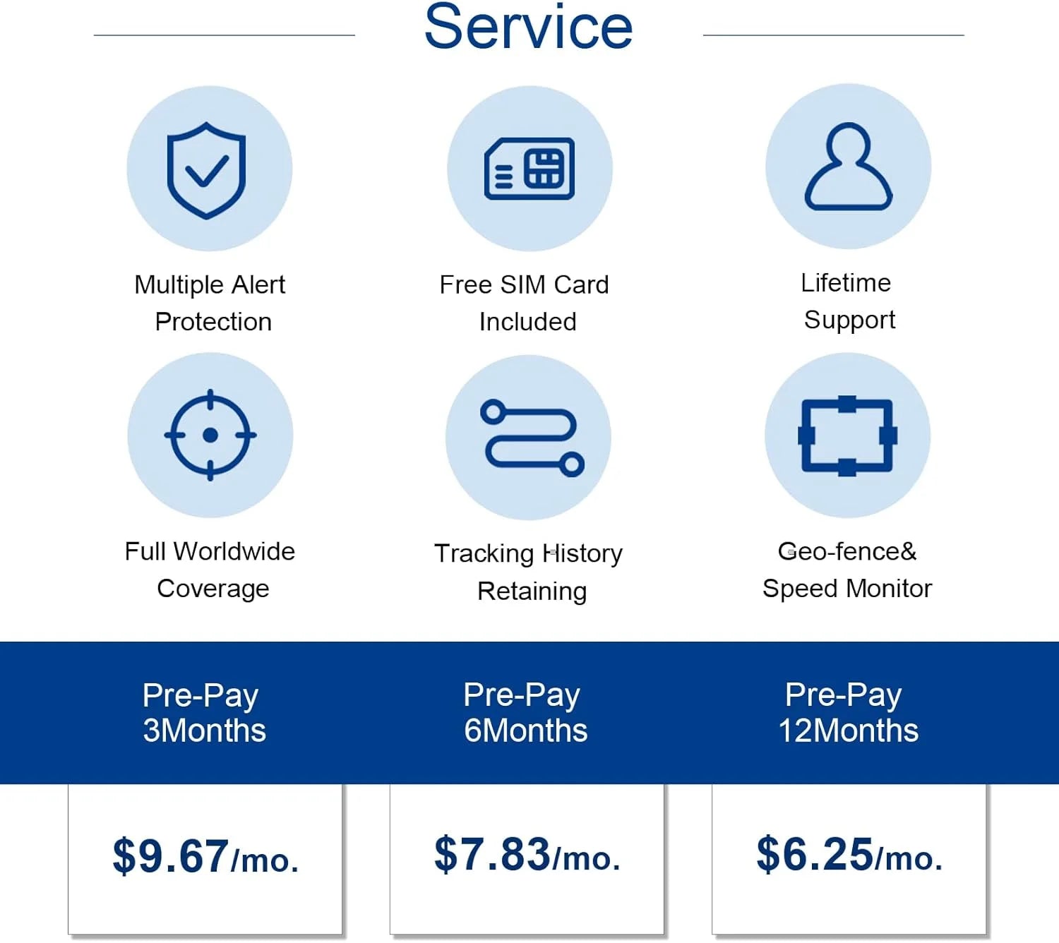Our gps tracker subscription fee is lower than others, the monthly fee is $14.99, and the long-term prepayment is as low as $4.17/month. (Prices may vary in different countries; specific charges will be shown on the app.)