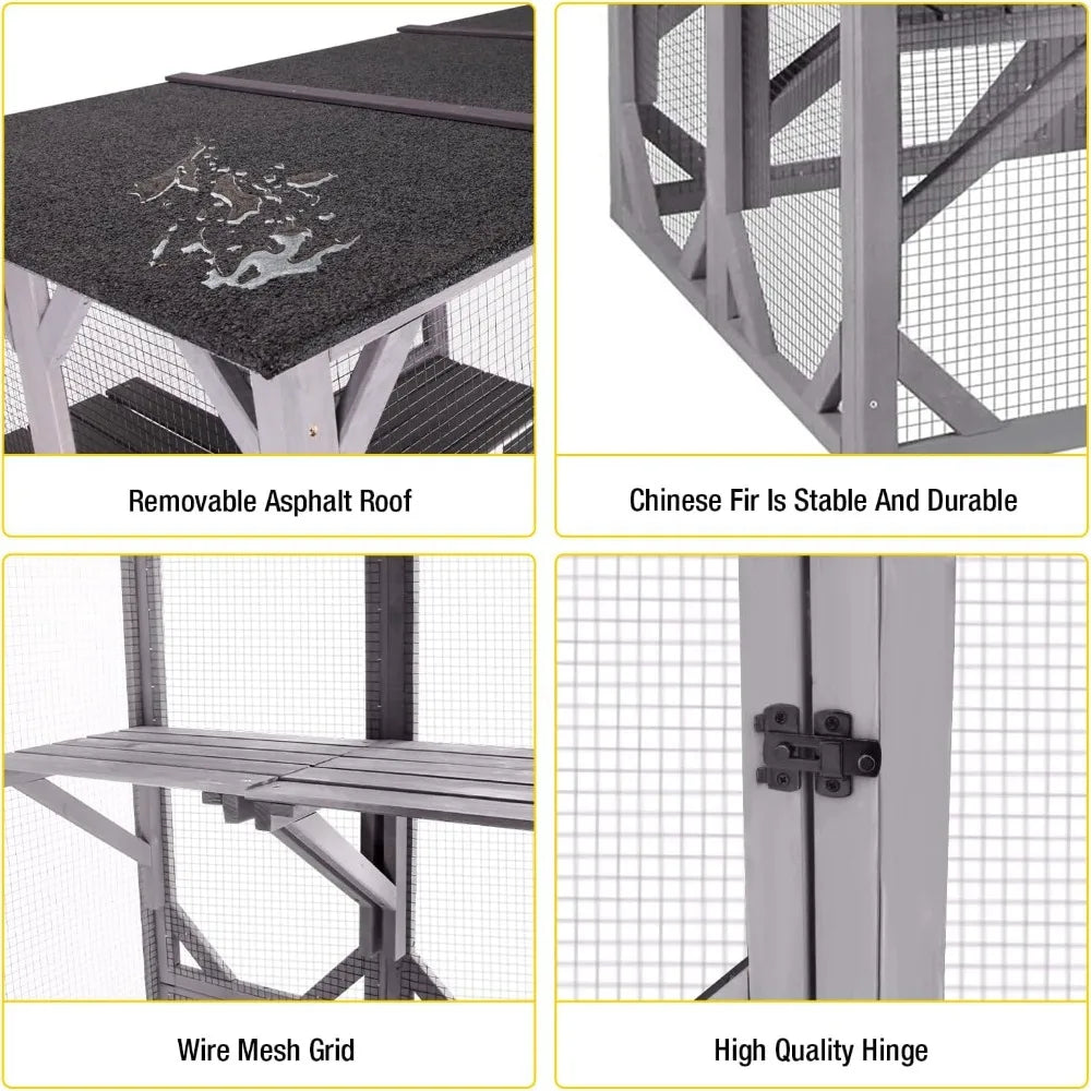 - Durable & Weatherproof: Built from high-quality fir wood with a weather-resistant asphalt roof and galvanized wire mesh to keep predators out and your cats safe.
