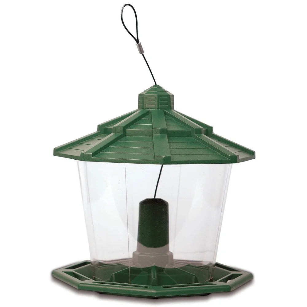 Made from sturdy plastic and built to withstand outdoor conditions, this non-automatic feeder offers a generous 7-pound capacity and a convenient fruit-nut blend designed to meet the dietary preferences of many common species.