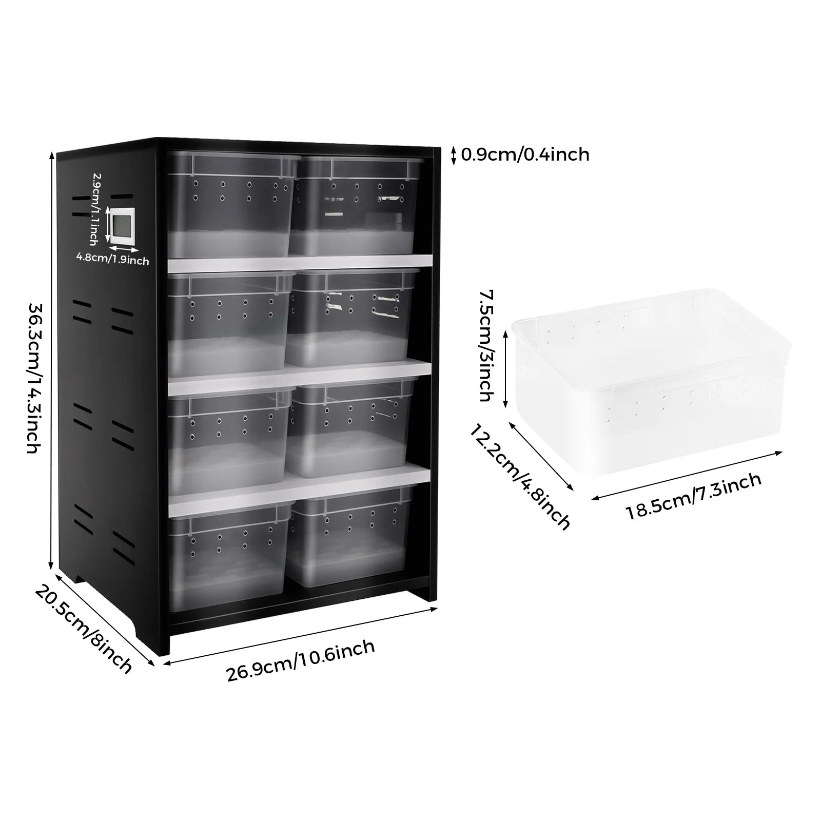 Reptile Breeding Cabinet with 8 Clear Boxes, 25W Heating Pad, Thermometer, for Spiders, Lizards & Small Reptiles, Space-Saving