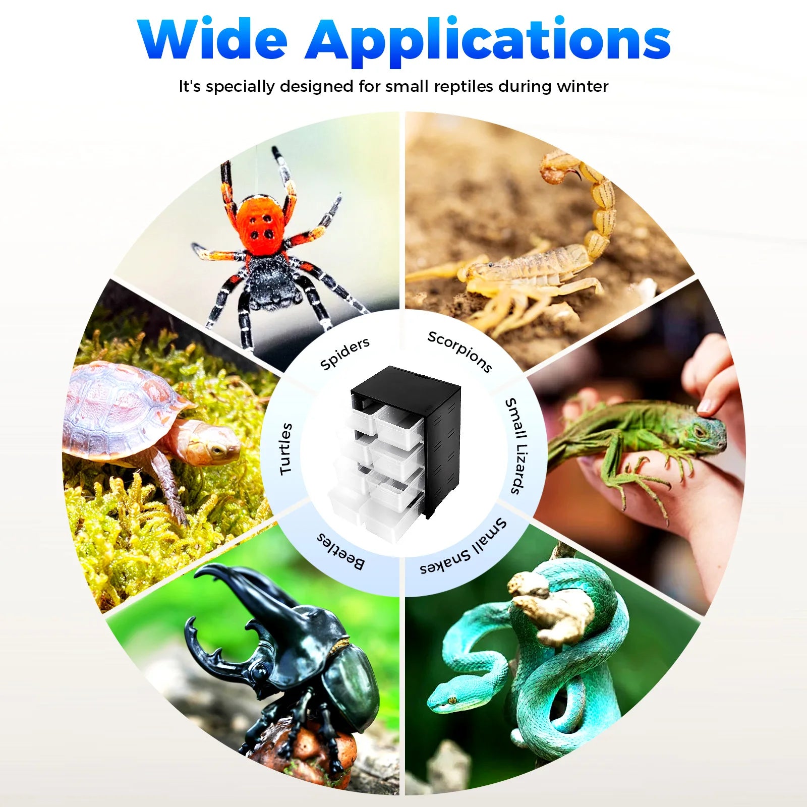 Thoughtful Design: The 25W heating pad with a thermostat can warm up your cabinet and provide a favorable habitat environment for your pet. The uniform ventilation holes on both sides of the cabinet and on the box effectively ensure air circulation and provide fresh air for reptiles.
