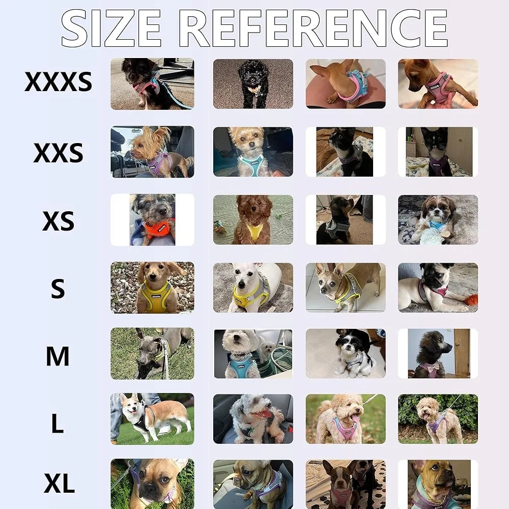 No Pull and No Choke: The vest-style design disperses the pressure through shoulders and chest, uniform force, no need to worry about the danger of suffocation or choking. Besides, our small dog harness is designed with a combination of hook and loop fastener, buckle and D-ring,they work together to protect your pet in three layer of security, ensuring that your dog will not easily escape.